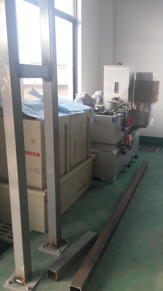 榮軒環保自制加藥槽、污泥過濾器。玻璃碳鋼儲液罐,管道排的很漂亮,管道支架底座采用優質塑料材質PPH環保耐腐蝕。細節做到位了,大方向就錯不了!
